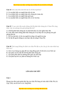 Câu 15 Vì sao cuộc đấu tranh chống chế độ phân biệt chủng tộc ở Nam Phi cũng