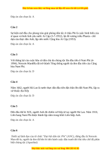 Câu 6 Tổ chức chính trị nào đã lãnh đạo nhân dân Nam Phi đấu tranh chống chế độ