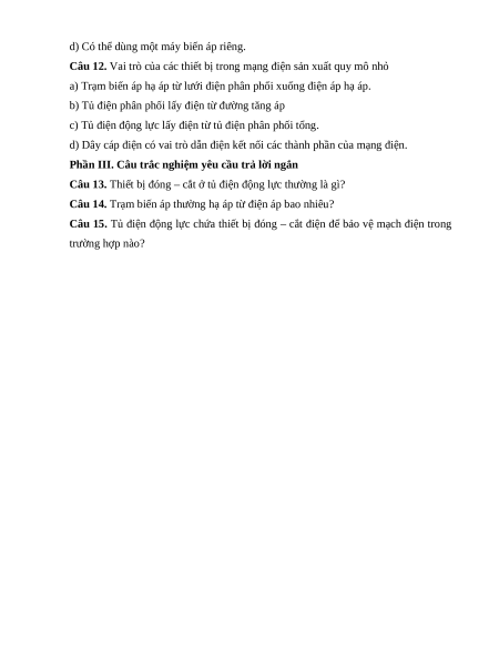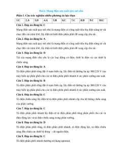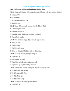 Câu 1. Công suất tiêu thụ điện năng của mạng điện sản xuất quy mô nhỏ khoảng A. vài chục kW B. vài trăm kW