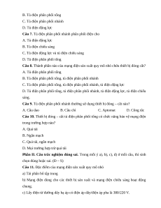 Câu 7. Tủ điện phân phối nhánh phân phối điện cho A. Tủ điện động lực B. Tủ điện chiếu sáng