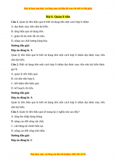 Câu 6. Phương án nào sau đây không thuộc nội dung nguyên tắc quản lý tiền hiệu quả?