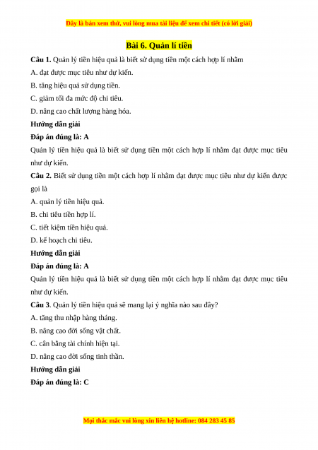 Câu 1. Quản lý tiền hiệu quả là biết sử dụng tiền một cách hợp lí nhằm