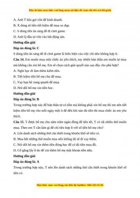 Đây là bản xem thử, vui lòng mua tài liệu để xem chi tiết (có lời giải)