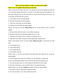 Câu 1. Toàn bộ trách nhiệm bắt buộc và tự nguyện mà một doanh nghiệp thực hiện đối