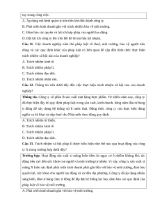 Câu 11. Việc doanh nghiệp tuân thủ pháp luật về thuế, môi trường, bảo vệ người tiêu