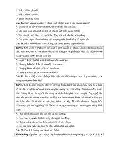 Câu 3. Trách nhiệm xã hội của doanh nghiệp không bao gồm các hình thức nào dưới đây? A. Trách nhiệm tự chủ. B. Trách nhiệm kinh tế.