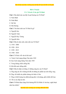 Câu 1. Địa danh nào sau đây là quê hương của Tô Hoài? A. Nam Định B. Ninh Bình C. Hà Nội D. Hải Dương