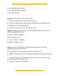 Đây là bản xem th , vu ử i lòng mua tài li u ệ đ xe ể m chi ti t (c ế ó l i ờ gi i ả ) C. ch đ ế đ ộ c ộ tài Batixta đư c ợ thi t ế l p ậ D. cu c t ộ ấn công c a ủ Mĩ b ở ờ bi n H ể i-rôn Câu 5: Lãnh t c ụ a ủ phong trào cách m ng ạ C ở uba (1959) là ai? A. N. Manđêla B. Phiđen Cátxt r ơ ô C. G. Nêru D. M. Ganđi