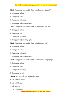Câu 6. Trang ph c nào s ụ au đây đư c ợ phân lo i ạ theo l a t ứ uổi? A. Trang ph c t ụ r em ẻ B. Trang ph c nam ụ C. Trang ph c m ụ ùa nóng D. Trang ph c m ụ c ặ thư ng ngày ờ