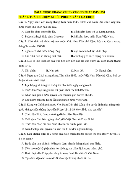 BÀI 7. CUỘC KHÁNG CHIẾN CHỐNG PHÁP 1945-1954