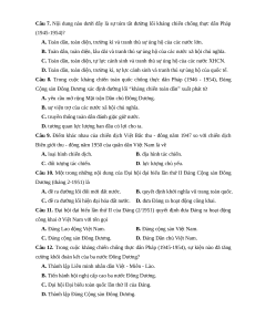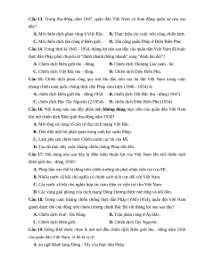 Câu 12. Trong cuộc kháng chiến chống thực dân Pháp (1945-1954), sự kiện nào đã tăng