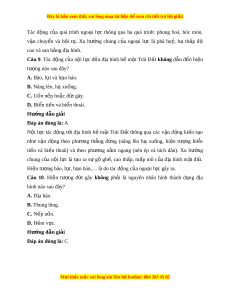 Câu 7. Nguồn năng lư ng ợ sinh ra ngo i ạ l c ch ự ủ y u l ế à c a ủ A. b c ứ x t ạ M ừ t ặ Tr i ờ đ n ế Trái Đ t ấ . B. s phân ự hu các ch ỷ ất phóng x . ạ