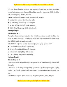 Câu 1. Nguyên nhân c a hi ủ n t ệ ư ng bi ợ n t ể i n, bi ế n t ể hoái là do A. bi n đ ế ổi khí h u t ậ oàn cầu gây ra. B. v n đ ậ ng ộ nâng lên và h xu ạ ống. C. nh ả hư ng c ở a ủ đ a ị hình ven bi n. ể D. tác đ ng c ộ a h ủ i ả l u ch ư y ven ạ b . ờ Hư ng d ớ ẫn gi i ả Đáp án đúng là: B V n ậ đ ng ộ theo phư ng ơ th ng ẳ đ ng ứ là v n ậ đ ng ộ nâng lên h ạ xu ng ố di n ễ ra trong m t ộ khu v c ự r ng ộ l n, ớ làm cho b ph ộ n ậ này c a ủ l c ụ đ a ị đư c ợ nâng lên, trong khi bộ ph n khác b ậ ị hạ xuống, k t ế quả dẫn t i ớ hi n t ệ ư ng ợ bi n t ể i n và bi ế n t ế hoái. Câu 2. Đặc đi m ể c a ủ v n đ ậ ng t ộ heo phư ng ơ th ng đ ẳ ng l ứ à A. x y ả ra r t ấ ch m ậ trên m t ộ di n t ệ ích l n. ớ B. x y r ả a r t ấ nhanh trên m t ộ di n t ệ ích nh . ỏ C. x y ả ra r t ấ ch m ậ trên m t ộ di n t ệ ích nh . ỏ D. x y ả ra r t ấ nhanh trên m t ộ di n t ệ ích l n. ớ Hư ng d ớ ẫn gi i ả Đáp án đúng là: A Đặc đi m ể c a ủ v n ậ đ ng ộ theo phư ng ơ th ng ẳ đ ng ứ là x y ả ra r t ấ ch m ậ trên m t ộ diện tích l n, ớ làm cho b ộ ph n ậ này c a ủ l c ụ đ a ị đư c ợ nâng lên, trong khi b ộ ph n ậ khác bị hạ xuống, k t ế qu d ả n t ẫ i ớ hi n t ệ ư ng bi ợ n t ể i n và bi ế n t ế hoái. Câu 3. Y u t