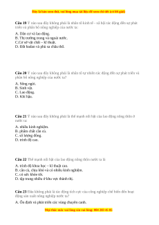 Câu 1 Tài nguyên nào được xem là tư liệu sản xuất không thể thay thế được của ngành nông nghiệp? A. Đất trồng. B. Khí hậu. C. Nguồn nước. D. Sinh vật.