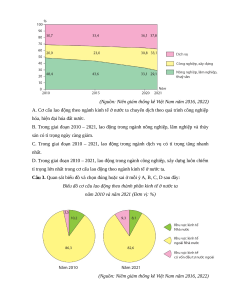 Câu 11. Cơ cấu lao động theo thành thị và nông thôn không có sự thay đổi theo hướng nào sau đây?