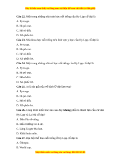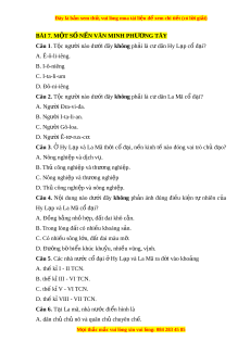 Đây là bản xem th , vu ử i lòng mua tài li u ệ đ xe ể m chi ti t ế (có l i ờ gi i ả ) BÀI 7. M T Ộ S N Ố N Ề VĂN MINH PHƯ N Ơ G TÂY Câu 1. T c ng ộ ư i ờ nào dư i ớ đây không ph i ả là cư dân Hy L p c ạ đ ổ i ạ ? A. Ê-ô-li-iêng. B. I-ô-niêng C. I-ta-li-um D. Đô-ni-iêng Câu 2. T c ng ộ ư i ờ nào dư i ớ đây không ph i ả là c dân L ư a Mã c đ ổ i ạ ? A. Ngư i ờ Đra-vi-đa. B. Ngư i ờ I-ta-li-an. C. Ngư i ờ Gô-loa. D. Ngư i ờ Ê-t - ơ rux-c . ơ