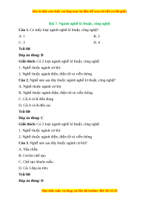 Đây là bản xem th , vu ử i lòng mua tài li u ệ đ xe ể m chi ti t (c ế ó l i ờ gi i ả ) Bài 7. Ngành ngh kĩ ề thu t ậ , công nghệ Câu 1. Có mấy lo i ạ ngành ngh kĩ ề thu t ậ , công ngh ? ệ A. 1 B. 2 C. 3 D. 4 Trả l i ờ Đáp án đúng: B
