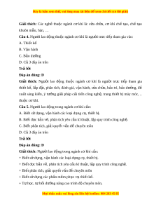 Câu 2. Nghề nào sau đây thu c ộ ngành ngh kĩ ề thu t ậ , công ngh ? ệ A. Nghề thu c ngành c ộ ơ khí B. Ngh t ề hu c ngành đi ộ n, đi ệ n t ệ và vi ử n t ễ hông C. Cả A và B đ u đúng ề D. C ả A và B đ u s ề ai Trả l i ờ Đáp án đúng: C