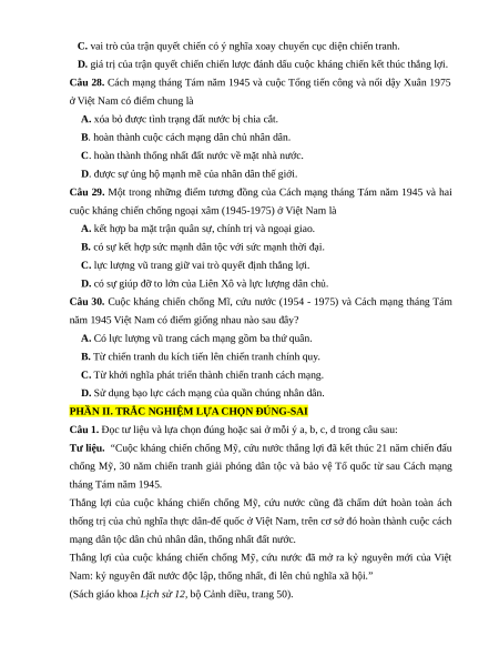 Câu 17. Cuộc kháng chiến chống Mĩ, cứu nước của nhân dân Việt Nam (1954 - 1975) kết