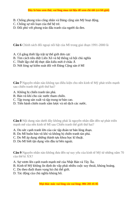 Câu 10 Mĩ đề ra chiến lược toàn cầu sau Chiến tranh thế giới thứ hai không nhằm