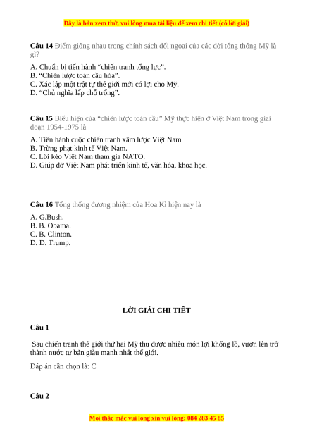 Câu 14 Điểm giống nhau trong chính sách đối ngoại của các đời tổng thống Mỹ là