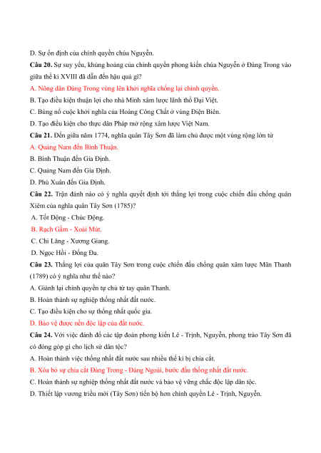 Câu 19. Đoạn tư liệu dưới đây phản ánh vấn đề nào trong xã hội ở Đàng Trong giữa thế kỉ XVIII?