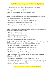Câu 11: Mĩ đã có hành đ ng gì ộ đ t ể h c hi ự n “C ệ hi n ế lư c t ợ oàn c u” ầ trong nh ng năm ữ 1945 - 1973? A. T o áp ạ l c quân s ự , ự bu c các ộ nư c t ớ b ư n ả sau chi n ế tranh ph i ả ph c t ụ ùng Mĩ. B. Cùng v i ớ Anh, Pháp chi n đ ế u b ấ o v ả h ệ t ệ h ng t ố hu c ộ đ a ị cũ trên th g ế i i ớ . C. Kêu g i ọ các nư c t ớ b ư n ả Đ ng m ồ inh thi t ế l p ậ n n t ề h ng t ố r c ị a ch ủ ngh ủ ĩa th c ự dân m i ớ các ở nư c t ớ h gi ế i ớ th ba. ứ D. Phát đ ng ộ cu c “C ộ hi n ế tranh l nh ạ ”, gây ra các cu c chi ộ n t ế ranh c c b ụ , ộ can thi p vào n ệ i ộ b nhi ộ u n ề ư c. ớ Câu 12: Bi u ể hi n nào ch ệ ng t ứ M