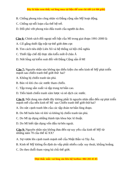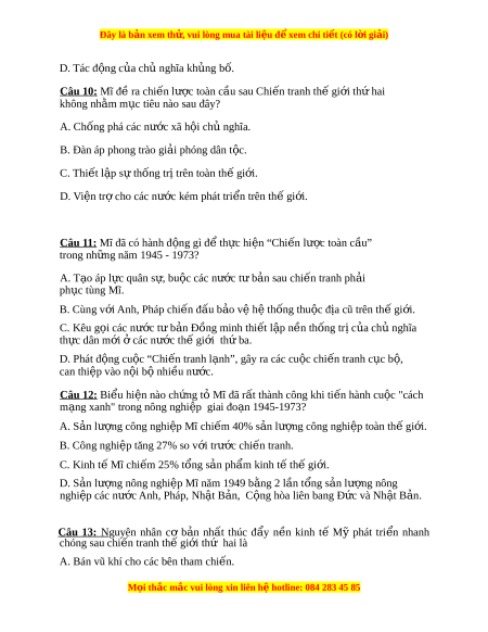 Đây là bản xem th , vu ử i lòng mua tài li u ệ đ xe ể m chi ti t (c ế ó l i ờ gi i ả ) D. Tác đ ng c ộ a ủ ch nghĩ ủ a kh ng ủ b . ố Câu 10: Mĩ đ r ề a chi n l ế ư c t ợ oàn c u s ầ au Chi n ế tranh th gi ế i ớ th hai ứ không nh m ằ m c t ụ iêu nào sau đây?