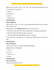 Câu 1. Nước có trình độ phát triển kinh tế - xã hội cao nhất ở Châu Á là