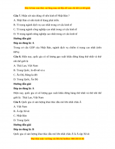 Câu 8. Hiện nay, quốc gia có số lượng gạo xuất khẩu đứng hàng thứ nhất và thứ nhì thế giới là A. Thái Lan, Việt Nam
