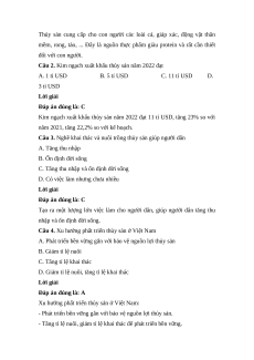Câu 2. Kim ngạch xuất khẩu thủy sản năm 2022 đạt A. 1 tỉ USD B. 5 tỉ USD C. 11 tỉ USD D. 3 tỉ USD