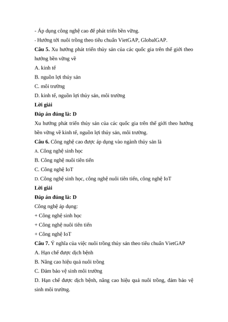 Câu 6. Công nghệ cao được áp dụng vào ngành thủy sản là A. Công nghệ sinh học