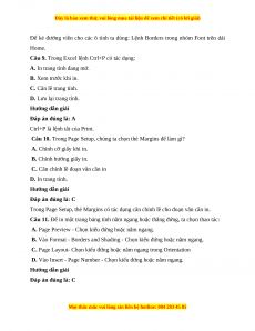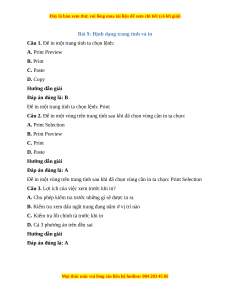 Câu 2. Để in một vùng trên trang tính sau khi đã chọn vùng cần in ta chọn: A. Print Selection B. Print Preview C. Print D. Paste Hướng dẫn giải