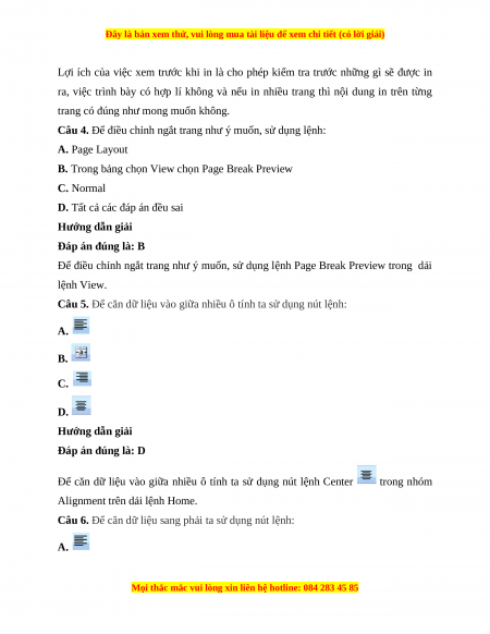 Câu 4. Để điều chỉnh ngắt trang như ý muốn, sử dụng lệnh: A. Page Layout