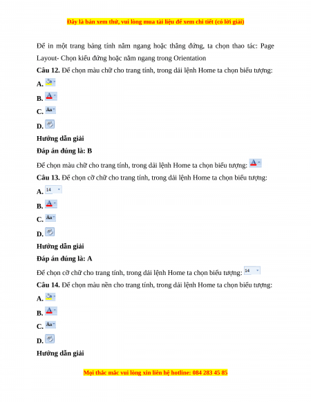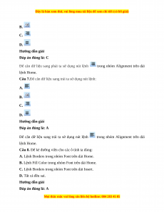 Câu 7.Để căn dữ liệu sang trái ta sử dụng nút lệnh: A. B. C. D. Hướng dẫn giải