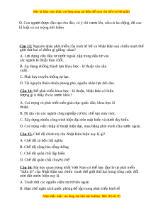 Câu 14: Để phát tri n khoa h ể c ọ - kĩ thu t ậ , Nh t ậ B n có hi ả n ệ tư ng gì ợ ít th y ấ các n ở ư c ớ khác? A. Coi tr ng và phát ọ tri n n ể n gi ề áo d c qu ụ c dân, khoa ố h c kĩ ọ thu t ậ .