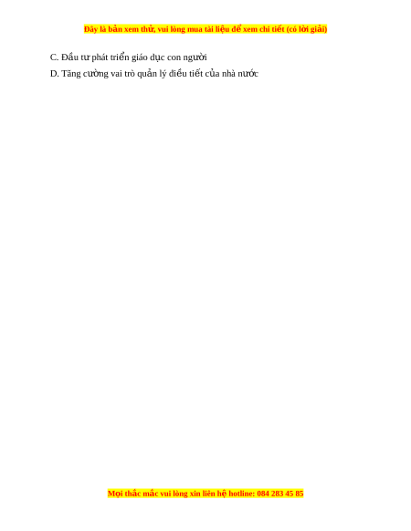 Câu 16: Bài h c quan t ọ r ng nh ọ ất Vi t ệ Nam có th h ể c t ọ p ậ t s ừ phát ự tri n ể “thần kì” c a ủ Nh t ậ B n s ả au chi n t ế ranh th gi ế i ớ th hai ứ trong công cu c đ ộ i ổ m i ớ đất nư c ớ hi n nay ệ là A. Tranh th các ngu ủ ồn viện tr t ợ ừ bên ngoài B. H n ch ạ ế ngân sách qu c phòng đ ố ể t p t ậ rung phát tri n ki ể nh t ế M i