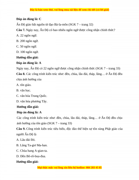 Câu 7. Ngày nay, Ấn Độ có bao nhiêu ngôn ngữ được công nhận chính thức? A. 22 ngôn ngữ. B. 200 ngôn ngữ. C. 50 ngôn ngữ. D. 100 ngôn ngữ. Hướng dẫn giải: Đáp án đúng là: A