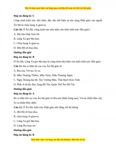 Câu 11. Ba vị thần tối cao của Ấn Độ giáo là A. Bra-ma, Vít-nu, Si-va.