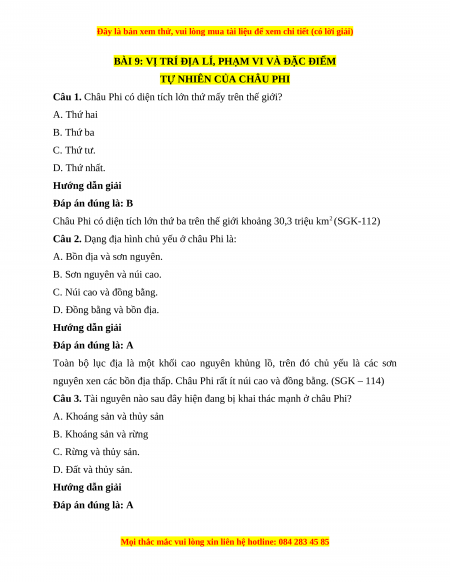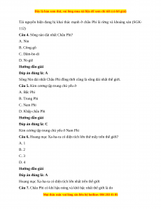 Câu 1. Châu Phi có diện tích lớn thứ mấy trên thế giới? A. Thứ hai B. Thứ ba C. Thứ tư. D. Thứ nhất. Hướng dẫn giải Đáp án đúng là: B