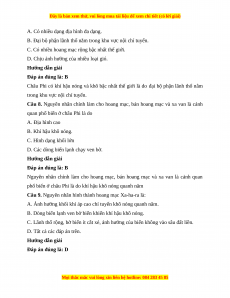 Câu 8. Nguyên nhân chính làm cho hoang mạc, bán hoang mạc và xa van là cảnh