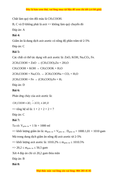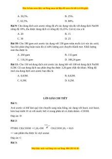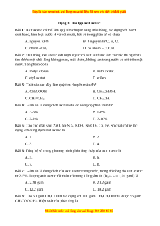 Bài 4: Giấm ăn là dung dịch axit axetic có nồng độ phần trăm từ A. 3-6% B. 1-8% C. 2-5% D. 2-10%