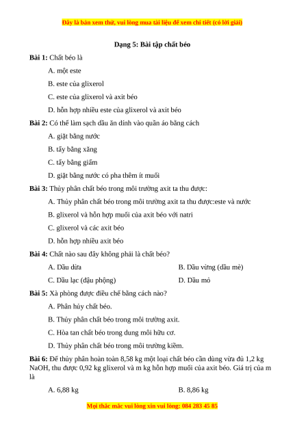 Đây là bản xem thử, vui lòng mua tài liệu để xem chi tiết (có lời giải)