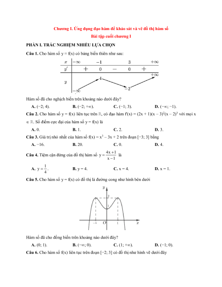 Chương I. Ứng dụng đạo hàm để khảo sát và vẽ đồ thị hàm số