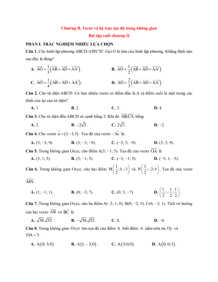 Chương II. Vectơ và hệ trục tọa độ trong không gian