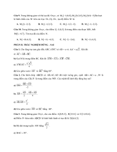 . Tọa độ của vectơ 2 2 MN . A. (1; −1; 1). B. (0; −3; 7). C. (0; 3; −7). D. 1 1 1 ; ; . 2 2 2