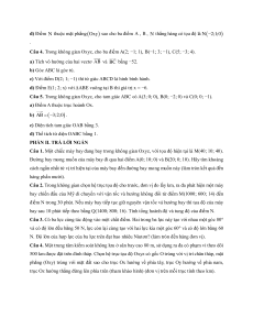 Câu 1. Một chiếc máy bay đang bay trong không gian Oxyz, với tọa độ hiện tại là M(40; 10; 40).