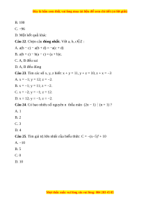 Câu 21. Khi x = −12 giá trị c a bi ủ u t ể h c ứ (x − 8)(x + 17) là: A. −100 M i ọ thắc m c