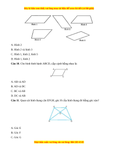 Câu 10. Cho hình bình hành ABCD, c p c ặ nh b ạ ng ằ nhau là: A. AB và AD B. AD và DC C. BC và AB D. DC và AB