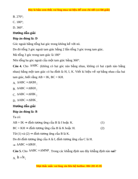 Đây là bản xem th , vu ử i lòng mua tài li u ệ đ xe ể m chi ti t (c ế ó l i ờ gi i ả ) B. 270°; C. 180°; D. 360°. Hư ng d ớ ẫn gi i ả Đáp án đúng là: D Góc ngoài b ng t ằ